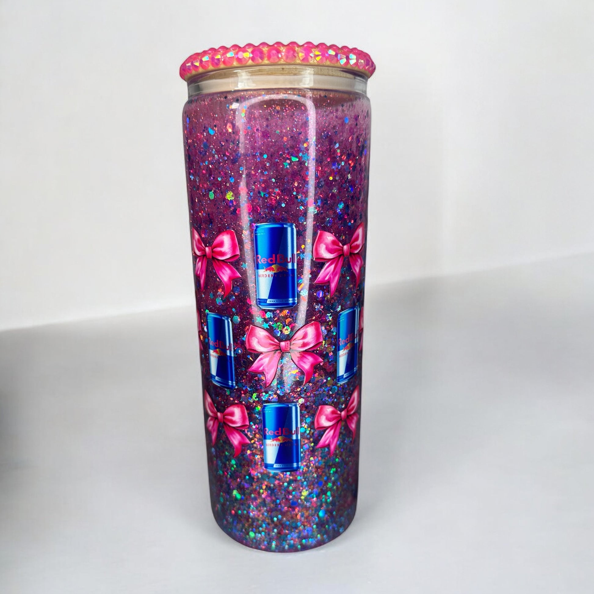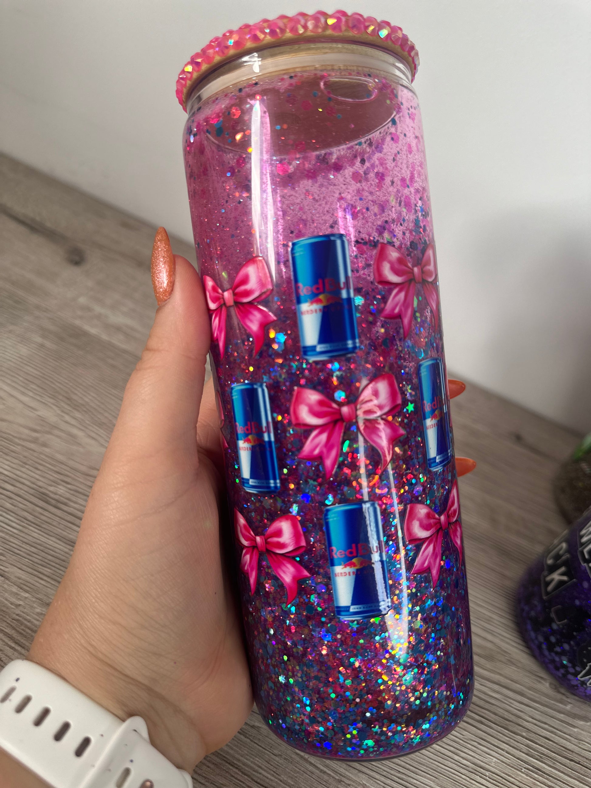 💖✨ Red Bull Snowglobe Glass Tumbler – 20oz ✨💖